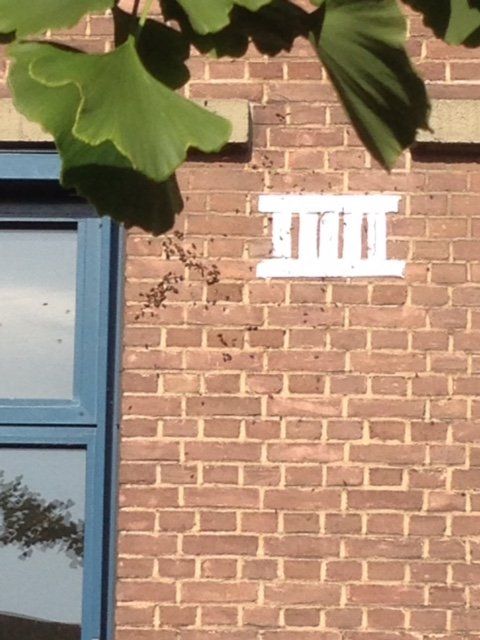 Bijen bij het Norbertuscollege met succes uit de muur.