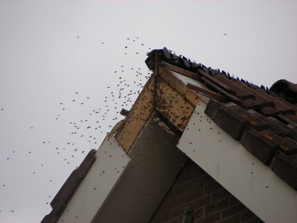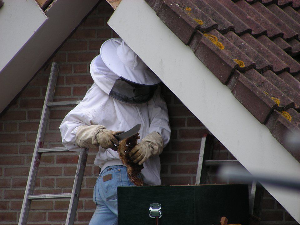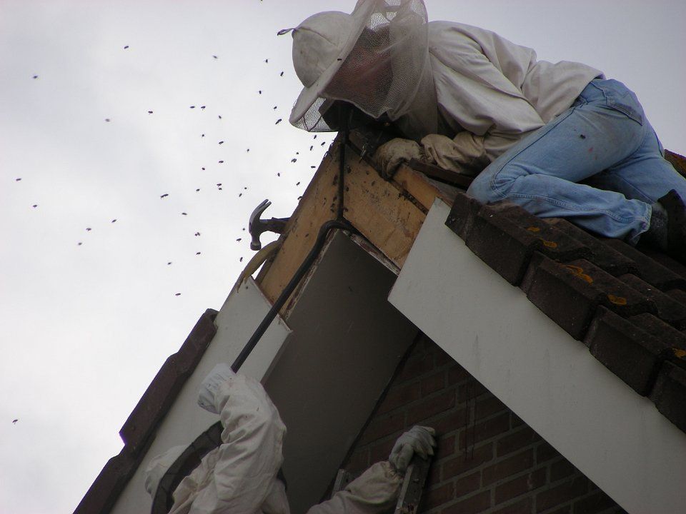 ( stagnatie van de bouwwerkzaamheden) hebben we in de Roosendaalse wijk Tolberg een bijenvolk uit de nok van een huis gehaald.