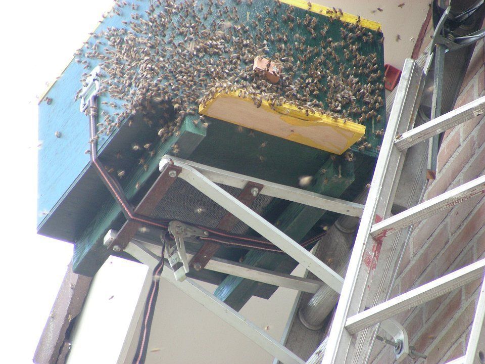 Zoals al eerder verteld heeft een bijenvolk veel ruimte nodig en zitten ze soms op grote hoogte.