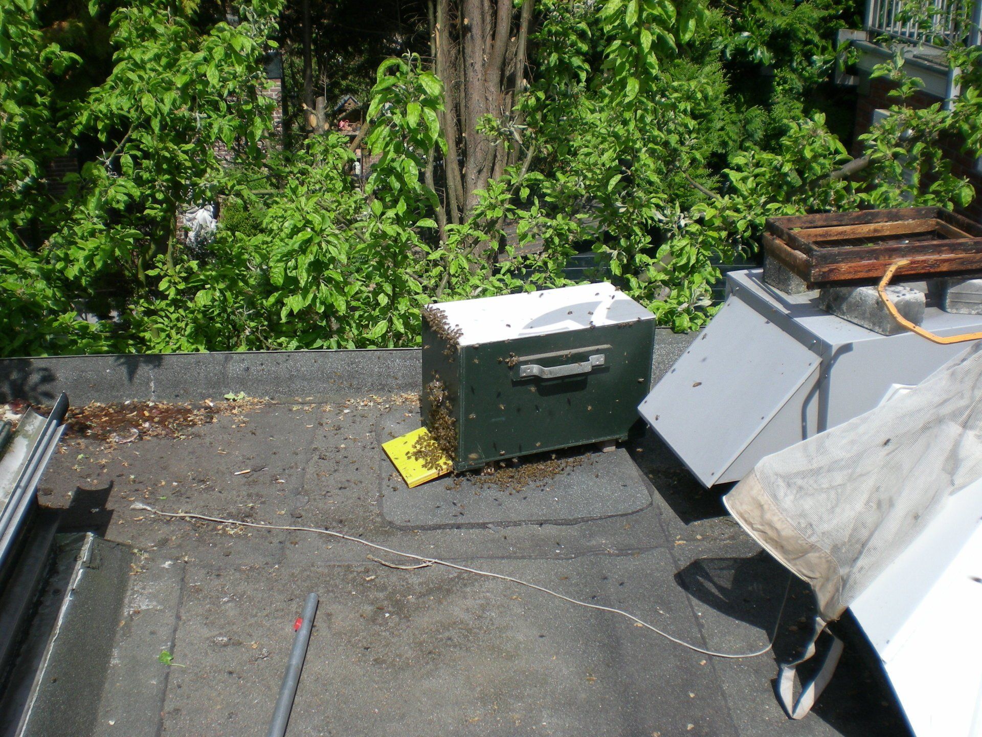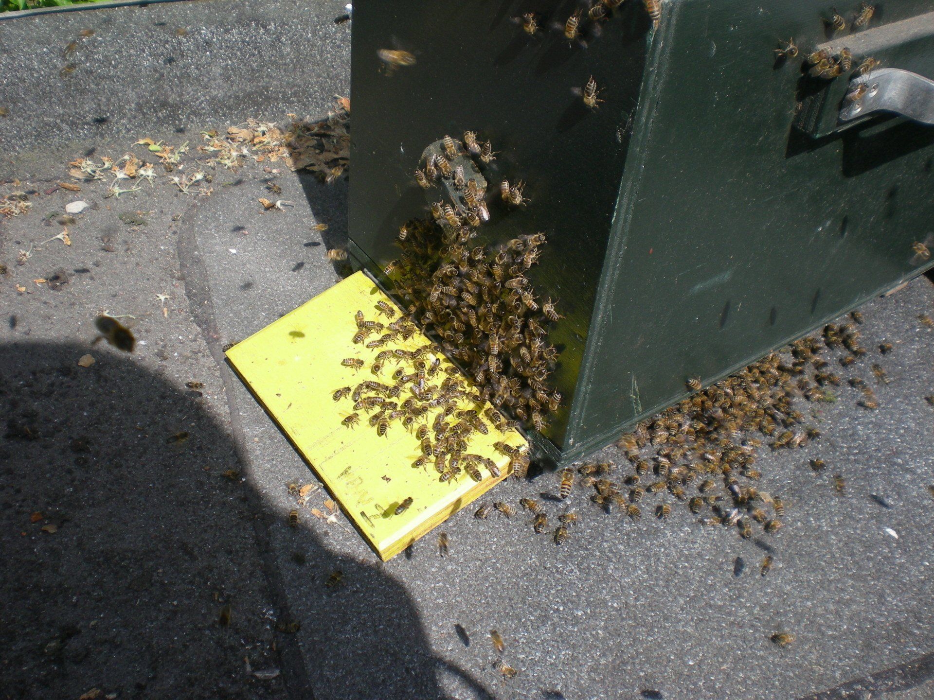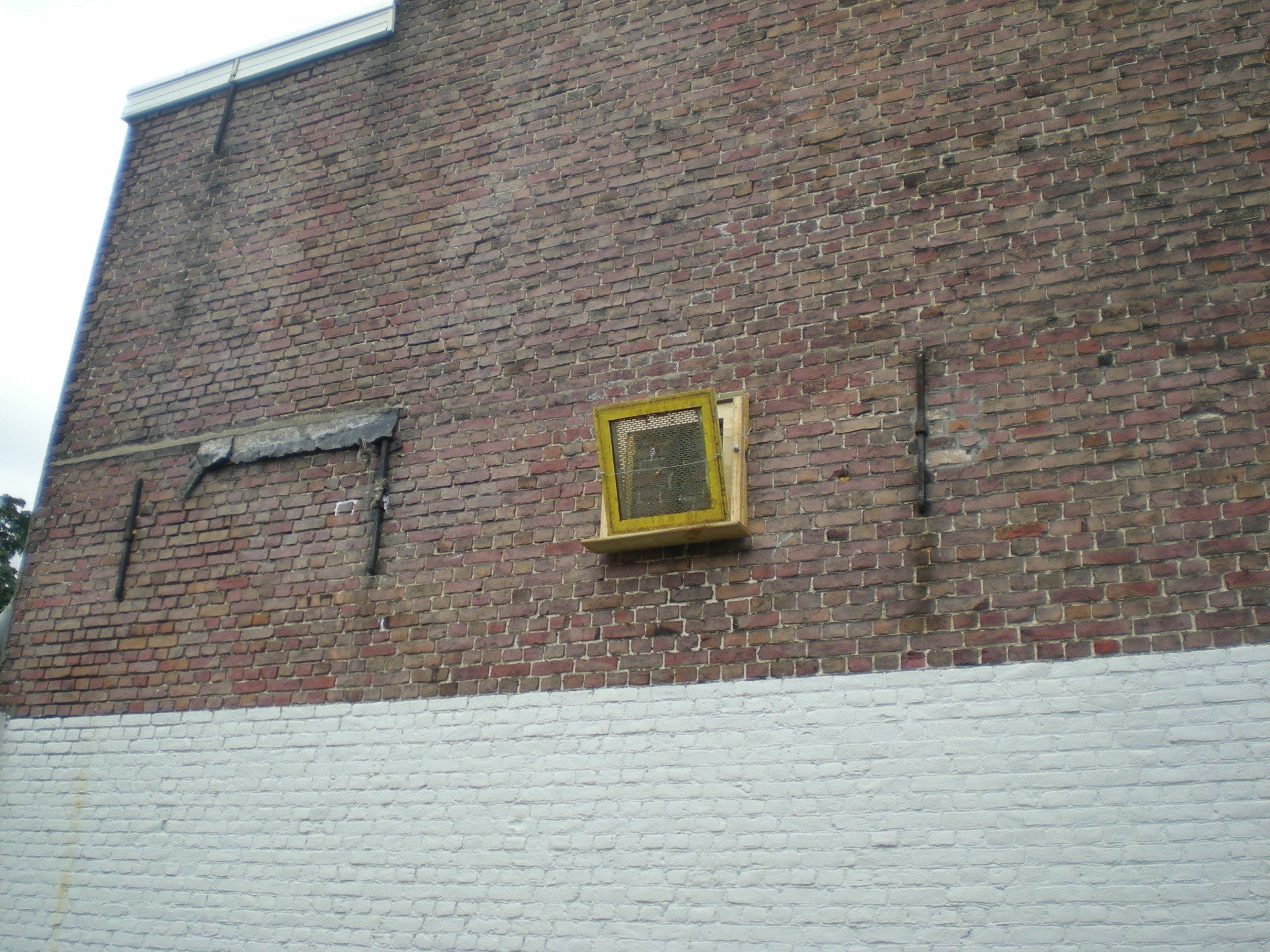Deze manier komt er op neer om kort na de eerste zwerm een rooster op de opening van de muur te plaatsen